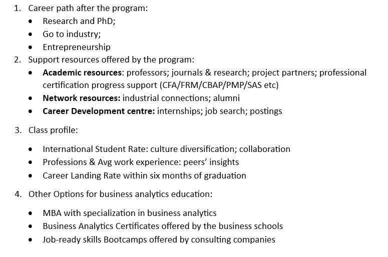 From the employment perspective, you could check the following indicators to evaluate if a MS in Business Analytics program is a good choice for you: