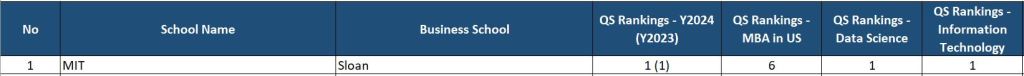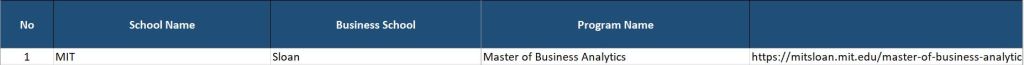 The writer referenced the QS Business Master’s Rankings for Business Analytics 2023, as well as MBA programs specialized in Business Analytics, to get a full list of Business Analytics education programs in the States. The following factors are considered for each business programs: